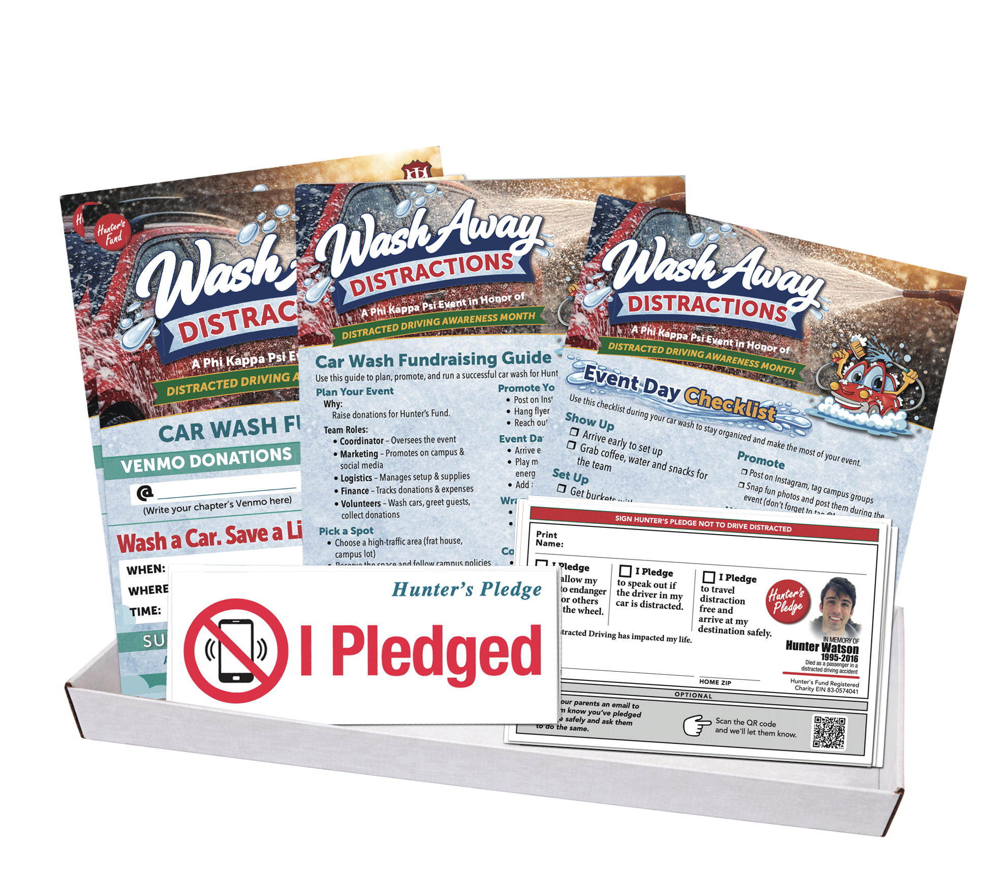 When your chapter registers, Hunter’s Fund will send you everything you need to host a successful car wash and promote safe driving on your campus.