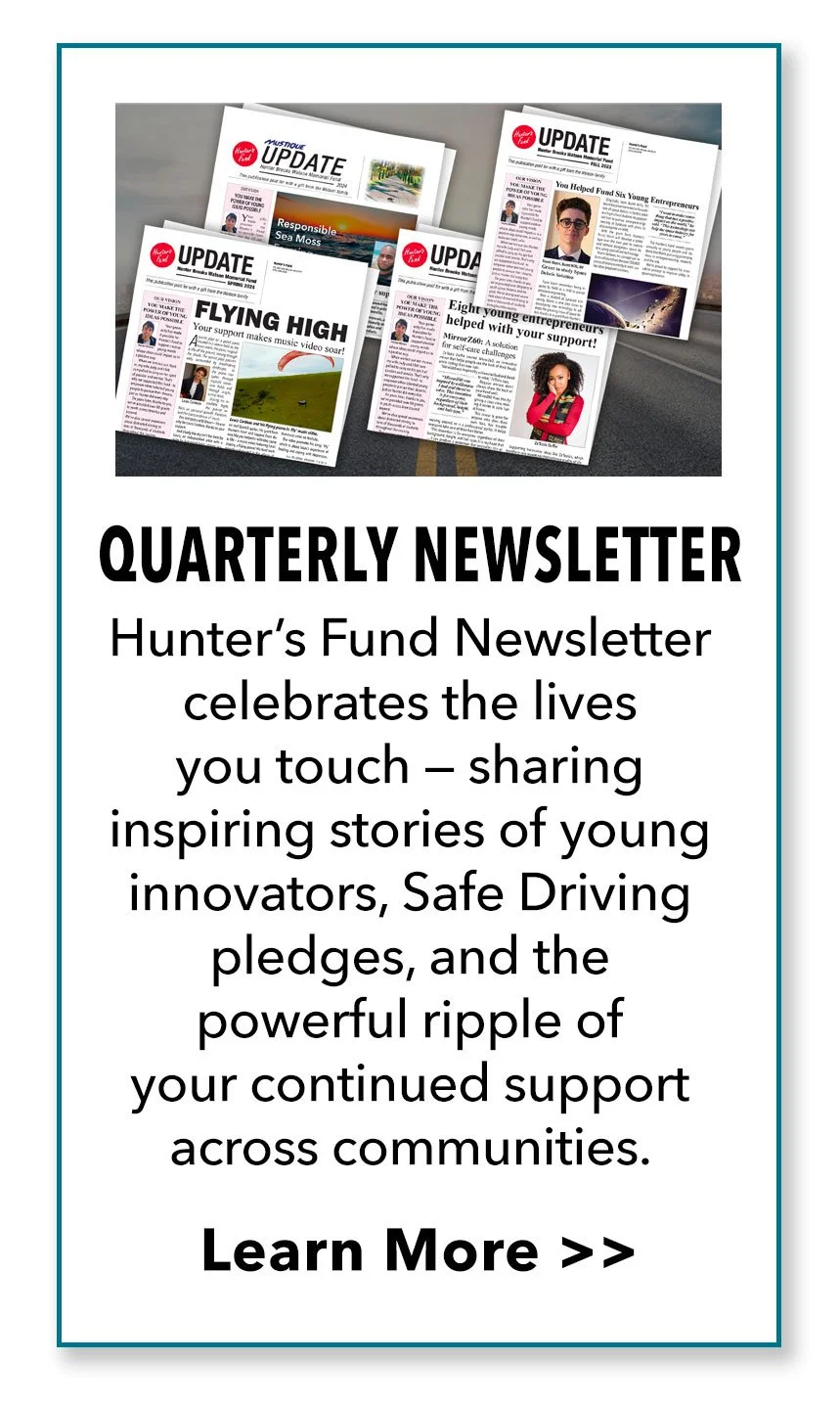 Hunter's Fund was created to support the creativity and talents of young people. The Fund provides innovative and talented young people with the means to help pursue their dreams and fulfill their ambitions.