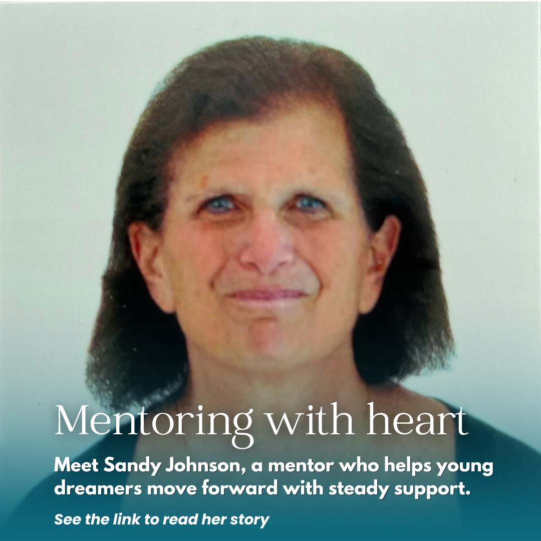 For Sandy Johnson, mentoring is more than volunteering—it’s a chance to walk alongside a young person as they pursue a dream. She believes encouragement and steady support can make all the difference: when someone believes in you, it matters.